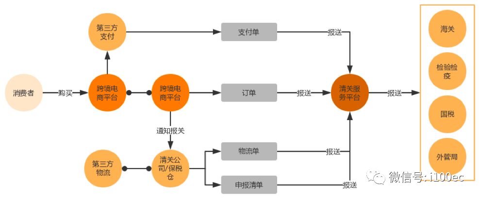 The e-commerce platform submits consumer orders to the customs clearance service platform of each customs area;